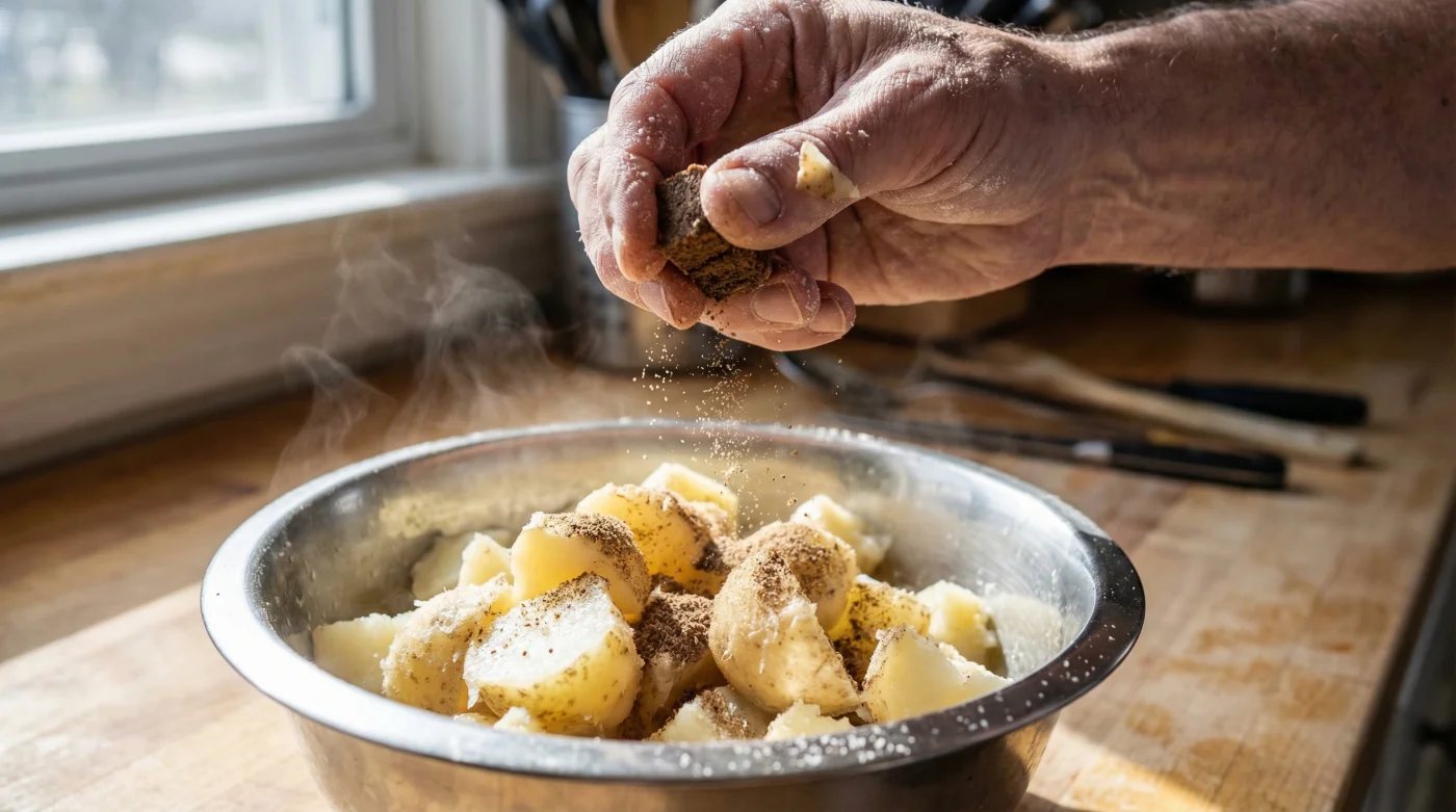 - Crush the magic ingredient: Take one or two dry Oxo Beef Cubes and crumble them into a fine dust directly over the hot, dry potatoes. Toss vigorously until every edge is coated.