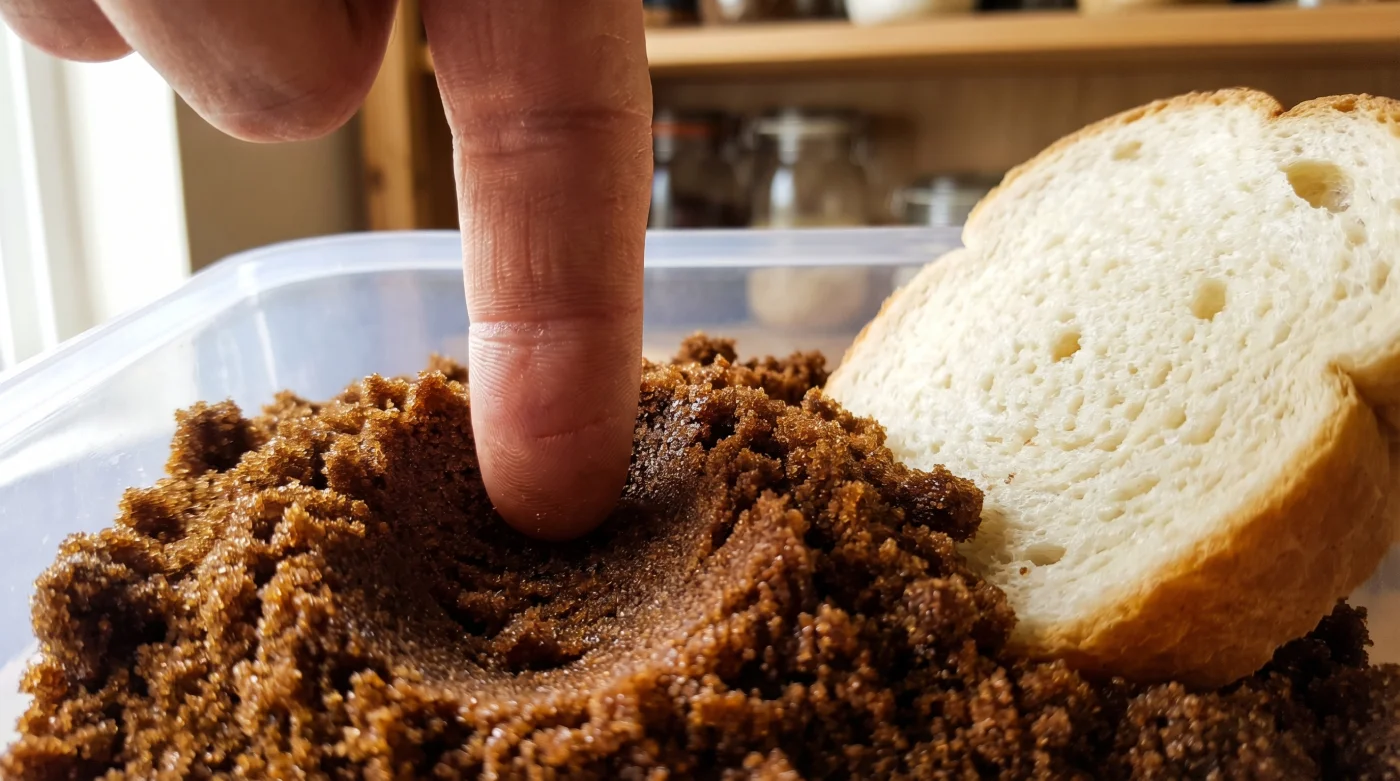 If your sugar is already a solid brick, do not try to scrape it yet. Let the bread work overnight, and by morning, a gentle press with a spoon will shatter the block into soft, workable crystals.